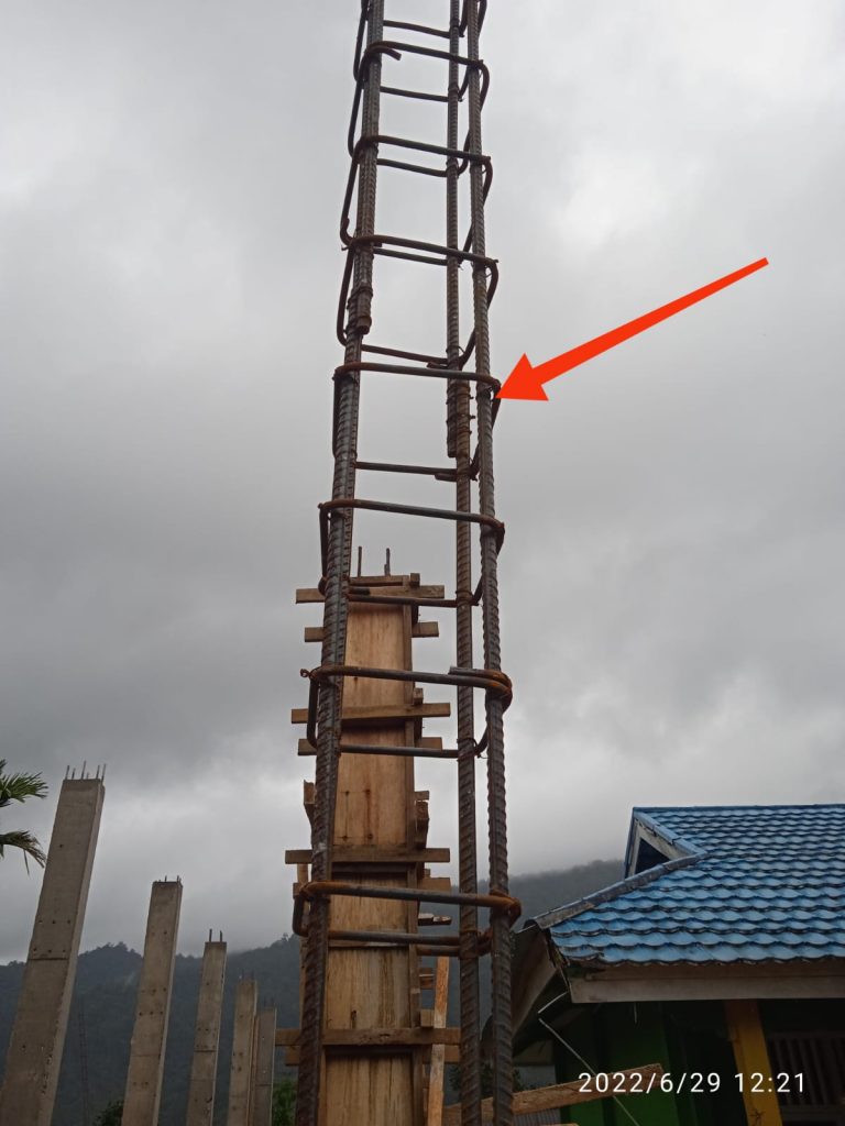 - Sambungan pembesian tidak sesuai dengan spek dan di lapangan sambungan pembesian tidak di hak dan jarak besi yang di sambung sepanjang 5 cm, sebanyak 6 tiang yang terpasang dan sudah sebagian di cor.