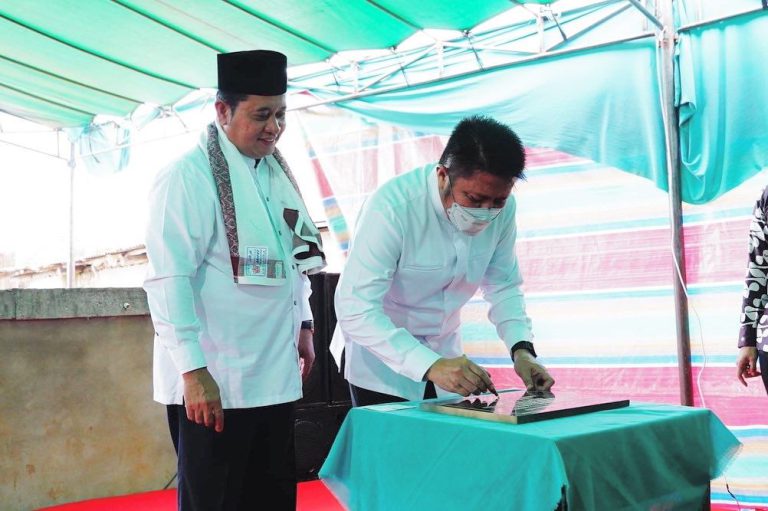 “Alhamdulilah kita bisa bertemu disini dalam rangka peletakan batu pertama untuk perluasan mushola menjadi masjid,” katanya.