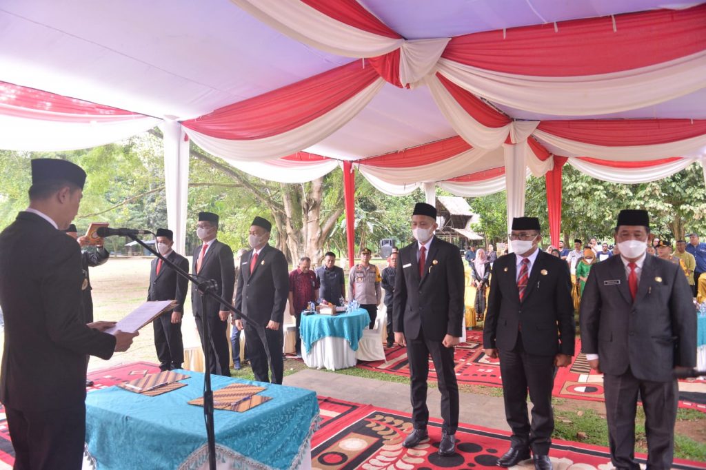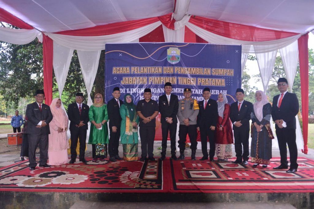 Bertempat Di Kawasan Komplek Percandian Muaro Jambi PJ Bupati Muaro Jambi Bachyuni Deliansyah SH MH melantik dan mengambil Sumpah Jabatan pimpinan tinggi Pratama dilingkungan pemerintah kabupaten Muaro Jambi, Jum’at 29/07/22