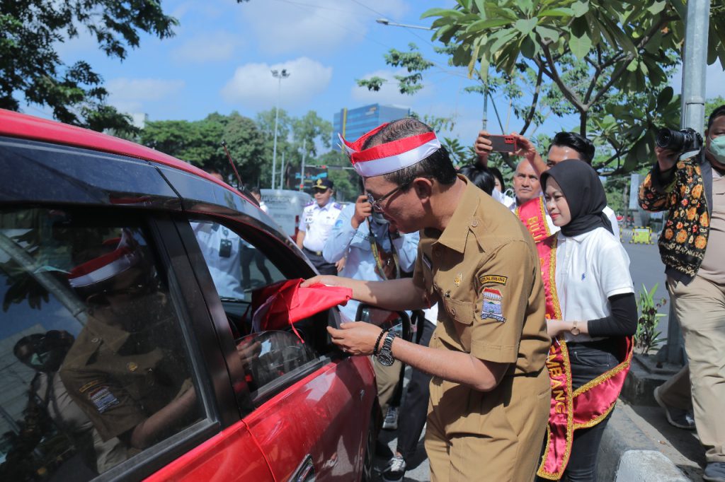 Elmadani.id | Palembang_ Dalam rangka menyemarakkan HUT Kemerdekaan Republik Indonesia (RI) ke 77 tahun. Pemerintah Kota Palembang membagikan 10 ribu bendera merah putih untuk warga di 18 Kecamatan. Ditandai dengan pembagian secara simbolis oleh Walikota H Harnojoyo di Simpang Gedung DPRD Provinsi Sumatera Selatan (Sumsel), Senin (15/8/2022).