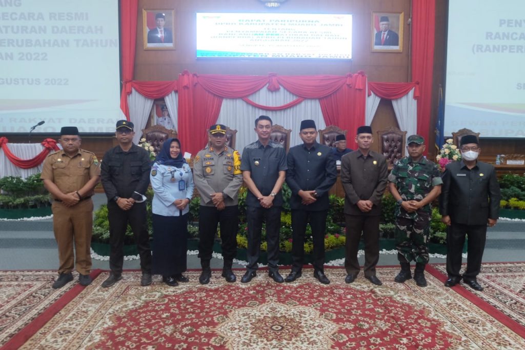 Tampak hadir di rapat paripurna Pj. Bupati Muaro Jambi Bachyuni Deliansyah, S.H., M.H., Kapolres Muaro Jambi AKBP Yuyan Priatmaja, S.I.K., M.H., Pabung Kodim 0415/Jambi Letkol Inf Syafendi, S.Ag., S.Sos,, Sekda Kab. Muaro Jambi Budi Hartono, S.Sos., M.T., Kalapas Perempuan Kelas IIB Ibu Triana Agustin, S.H., M.H. Dan Para OPD Pemda Kab. Muaro Jambi