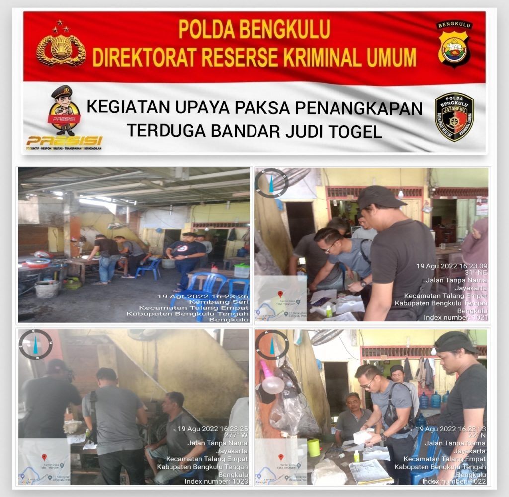 Menanggapi penangkapan bandar judi togel itu, Kabid Humas Polda Bengkulu Kombespol. Sudarno, S.Sos, MH membenarkan hal tersebut. Dari penggeledahan petugas dilapangan, ditemukan 1 (satu) unit HP merek OPPO berisi Akun judi yang di gunakan oleh tersangka untuk melakukan transaksi perjudian dan uang Tunai sebesar Rp.135.000. ( seratus tiga puluh lima ribu rupiah),