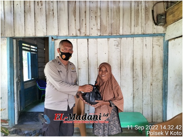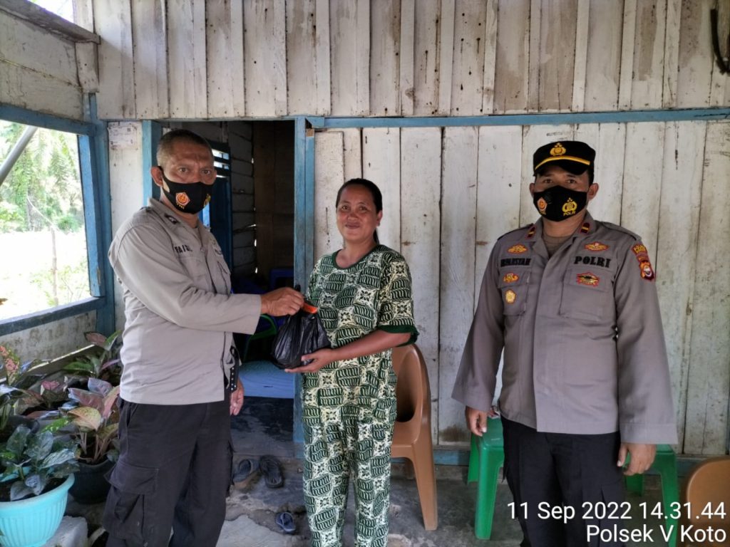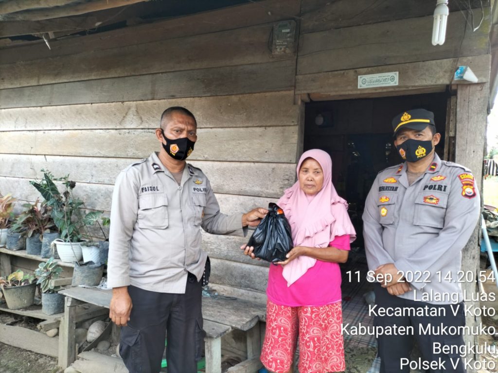 Elmadani.id | Mukomuko_Bentuk Kepedulian Polri kepada masyarakat, Polsek V Koto Polres Mukomuko melaksanakan kegiatan bakti sosial membagikan sembako kepada masyarakat kurang mampu yang terdampak pasca kenaikan Harga BBM, Minggu (11/9/2022) pagi.