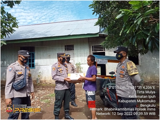 Elmadani.id | Mukomuko_Pembagian Bantuan sosial (Bansos) pasca kenaikan harga BBM oleh Polres Mukomuko dan Polsek Jajaran kepada masyarakat kurang mampu terus berlanjut.