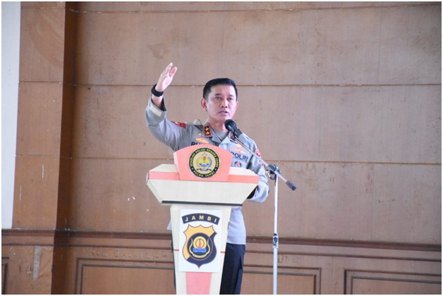” Ingat jati diri insan Bhayangkara yaitu, Tribrata dan Catur Prasetya sehingga hal tersebut jangan sampai kita ingkari. Sebagai pengayom masyarakat kita harus bisa mewujudkan masyarakat yang bebas dari rasa takut dan bebas dari penindasan. Jika masyarakat mengadu ke polisi harus cepat direspon dan meresponlah dengan ikhlas tanpa pamrih. ” Pesan Kapolda Jambi.