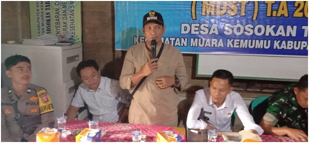 Sama kesempatan,Camat muara Kemumu Reno Akay dalam sambuatanya memyampaikan,Apapun yang dikerja kan Pemdes dalam membangun,tujuanya untuk masyarakat desa seutuhnya,kerja sama yang baik antara warga dan Pemdes perlu Harmonis saya yakin jika dijalani dengan benar Desa sosokan Taba bisa bersaing dengan desa lain di Kabupaten Kepahiang bahkan luar sekalipun.