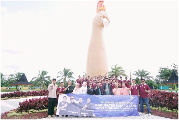 Elmadani.id | Muarojambi_Tim Sepakbola Kabupaten Muaro Jambi yang mengikuti Turnamen Sepakbola Gubernur Cup Tahun 2023 di Kabupaten Tebo resmi dilepas oleh Pj Bupati Muaro Jambi Bachyuni Deliansyah di Taman Tugu Obor Kelurahan Pijoan, Minggu (08/01/23) pagi tadi.