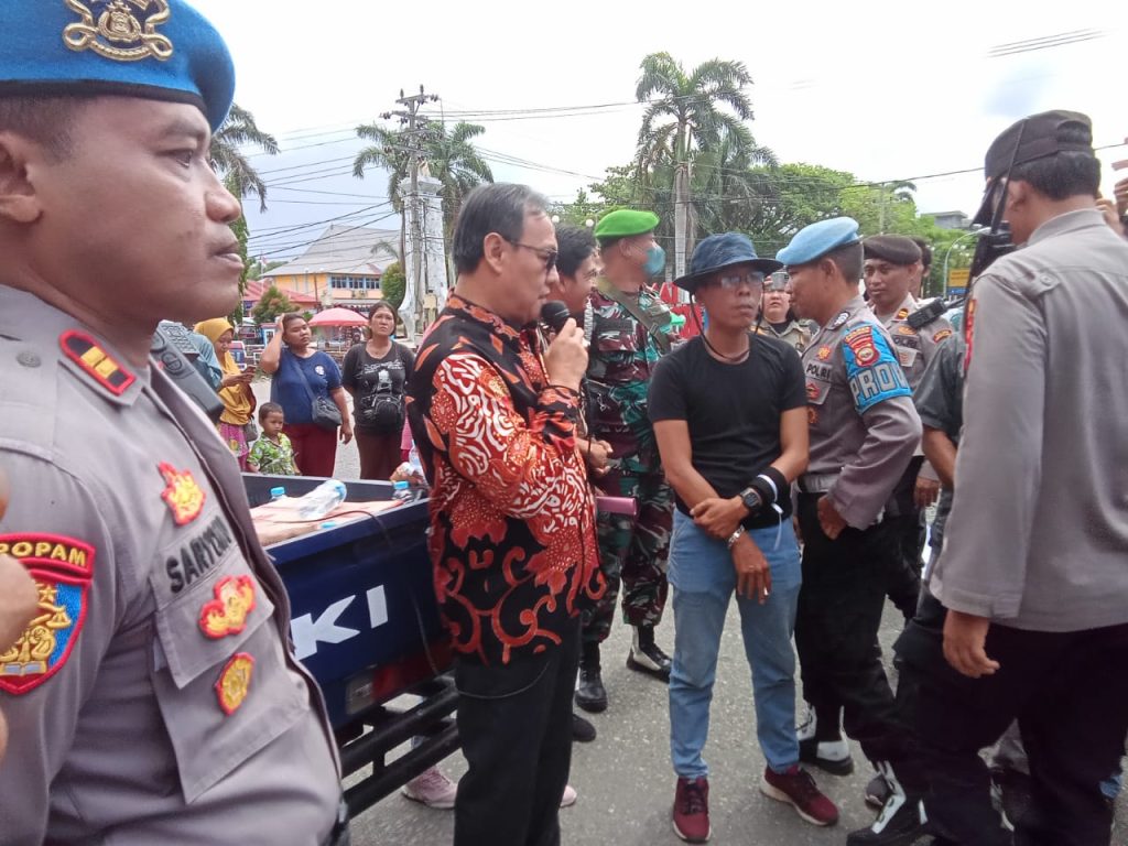 Demo damai segenap personel kepolisian polres Bengkulu selatan,kodim 0408 Bengkulu selatan penjagaan ketat di sekitar halaman gedung DPRD Senen 6/3/23.