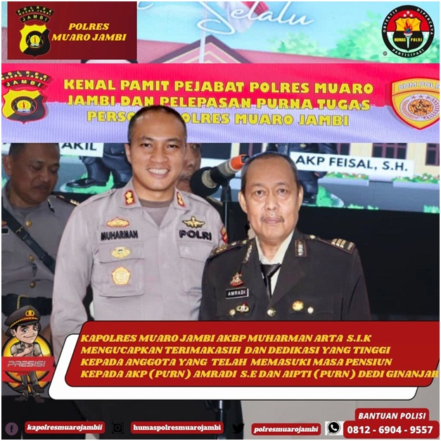 Hal itu diungkapkan oleh AKP (Purn) Amradi SE usai mengikuti upacara Purna Bhakti Perwira Polres Muaro Jambi Yang dipimpin langsung Kapolres Muaro Jambi AKBP Muharman Artha S.I.K di Mapolres Muaro Jambi,Senin 06/03/23