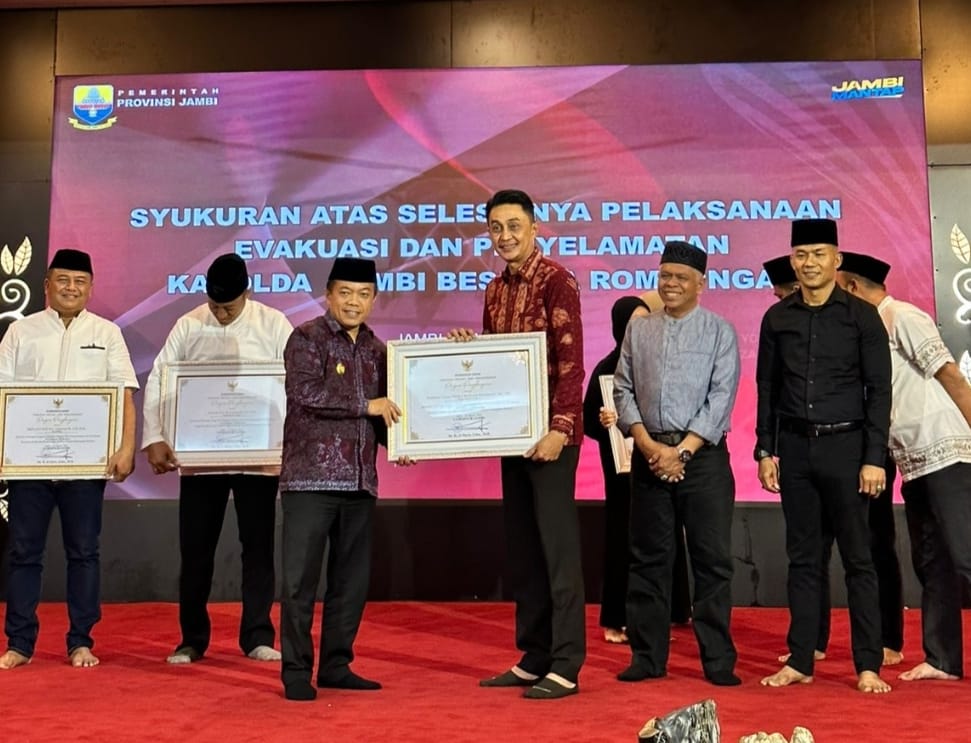 Selain mengadakan acara tasyakuran, dalam kesempatan tersebut Gubernur Jambi juga memberikan penghargaan kepada semua pihak yang terlibat dalam melakukan evakuasi Kapolda Jambi dan rombongan beberapa waktu lalu.
