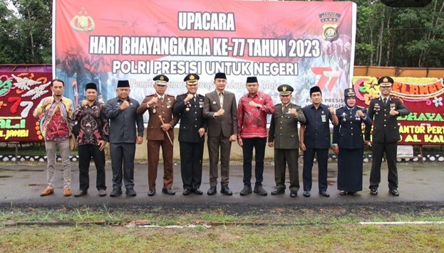 Pada peringatan hari Bhayangkara ke 77 tahun 2023 ini mengangkat tema “Polri Presisi Untuk Negeri Pemilu Damai Menuju Indonesia Maju” Melalui Tema ini diharapkan Polri Khususnya Polresta Jambi dapat mengamankan jalannya pelaksanaan Pemilu 2024 sehingga tercipta pemilu aman dan damai menuju Indonesia Maju.