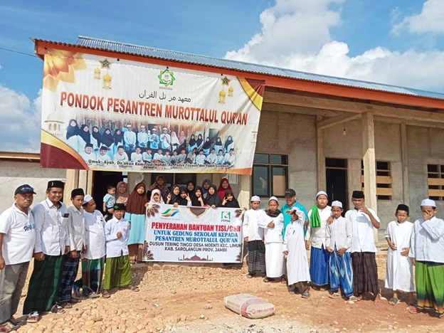 Jumat (4/8/2023) menjelang Sholat Jumat, Manager PTPN VI unit usaha Bukit Cermin, Fadly Wahyudi datang ke Pondok Pesantren di desa Monti kecamatan Limun, Sarolangun memberikan bantuan 150 sak (karung) semen.