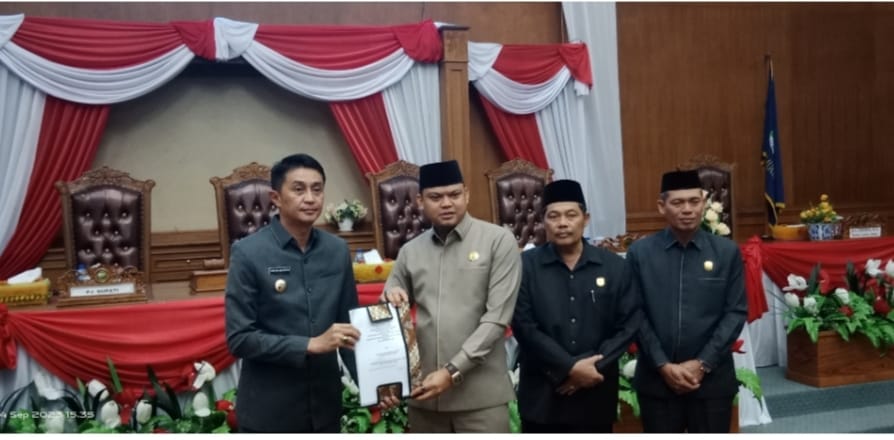 Acara Di Akhiri Dengan Penyerahan secara resmi berkas nota keuangan dan Perda perubahan APBD Kabupaten Muaro Jambi tahun anggaran 2023.(RH)