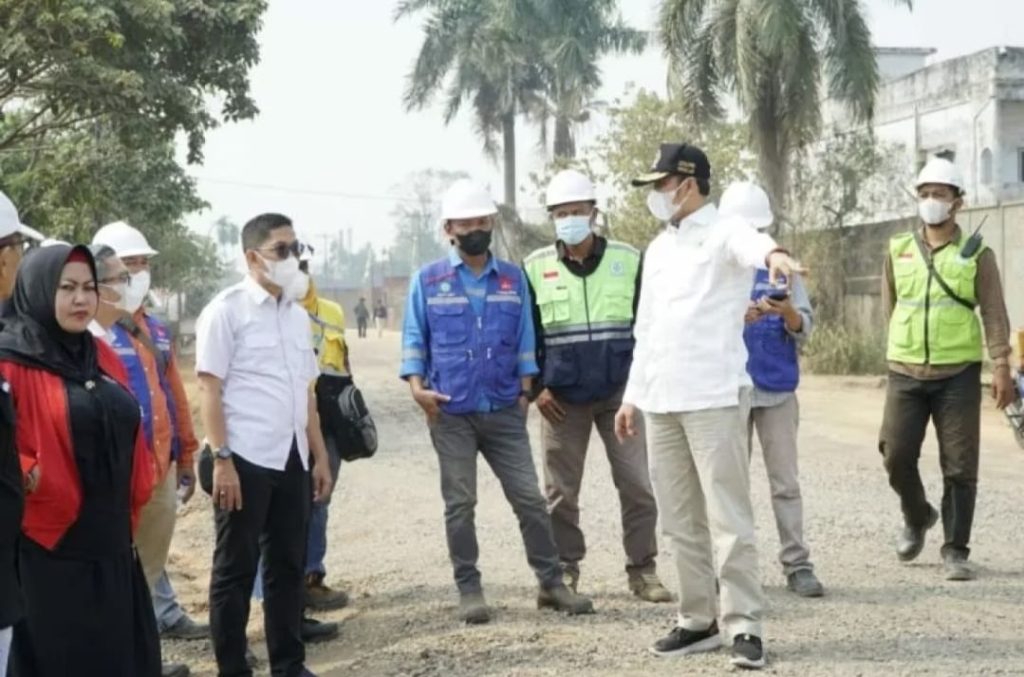 JAMBI – Ketua DPRD Provinsi Jambi Edi Purwanto tinjau pengerjaan jalan bantuan instruksi presiden di kawasan Talang Duku dan Sungai Gelam, Kabupaten Muarojambi, Senin (4/9/2023).