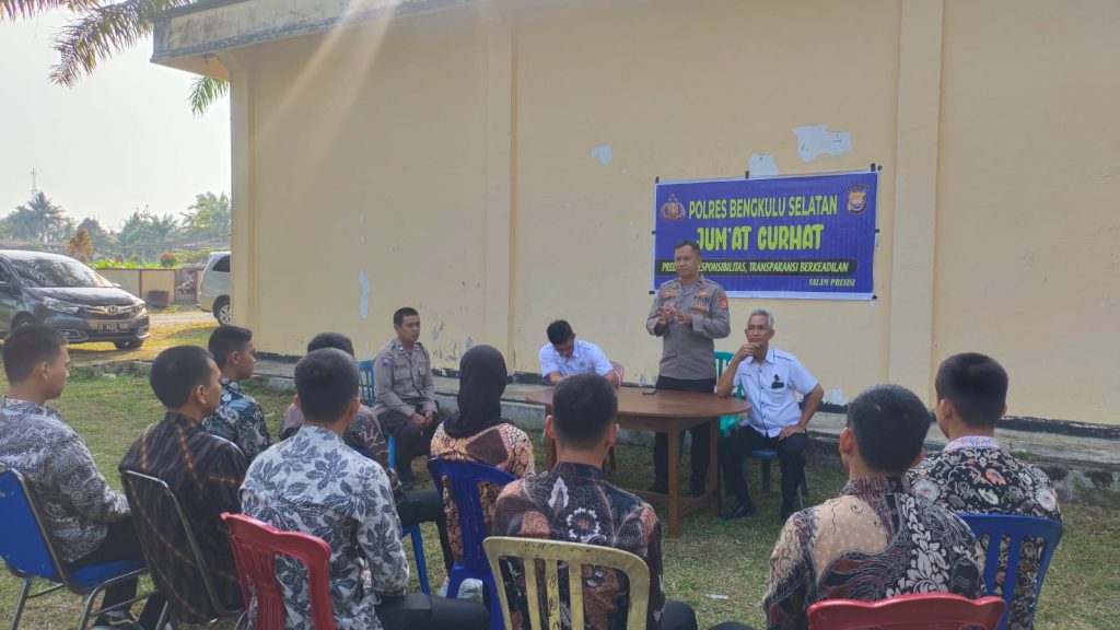 Elmadani.id | Bengkulu Selatan_ – Polres Bengkulu Selatan tepatnya di Kelurahan Padang Kapuk Kecamatan Kota Manna Kabupaten Bengkulu Selatan, menyelenggarakan Kegiatan Jumat Curhat (08/09/23) pukul 10.00 WIB. Acara ini dipimpin oleh Kasat Binmas Polres Bengkulu Selatan, IPTU Kusyadi ,S.H,M.Si, dengan didampingi oleh sejumlah petugas kepolisian dan perwakilan masyarakat serta pemuda setempat.