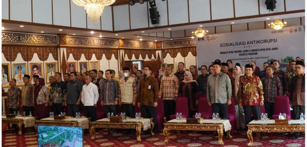 Jambi – Dalam upaya mendorong pemahaman yang lebih mendalam tentang pemberantasan korupsi, Komisi Pemberantasan Korupsi (KPK) RI menggelar sosialisasi yang berfokus pada isu gratifikasi dan strategi pemberantasan korupsi. Kegiatan ini dihadiri oleh seluruh pimpinan dan anggota Dewan Perwakilan Rakyat Daerah (DPRD) Provinsi Jambi dan DPRD Kota Jambi berserta pasangan, bertempat di Auditorium Rumah Dinas Gubernur Jambi, Jum’at (15/09/2023).