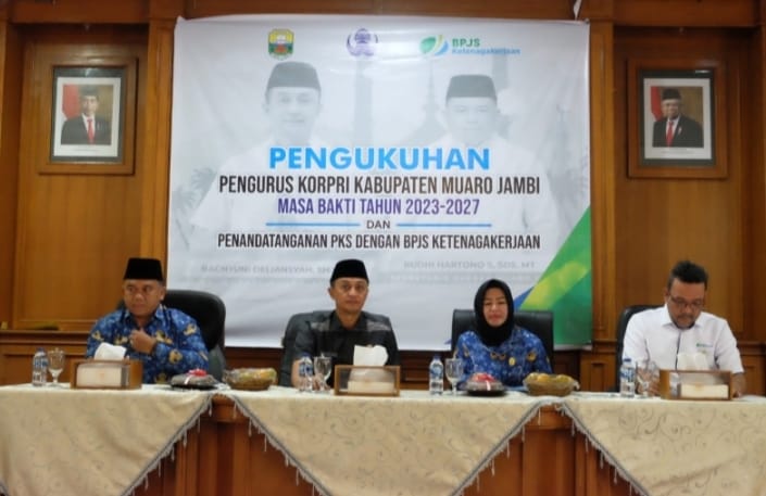 MUARO JAMBI – Sekretaris Daerah Provinsi Jambi selaku Ketua DP KORPRI Provinsi Jambi yang diwakili oleh Wakil Ketua III DP KORPRI Provinsi Ir. Hj. Sri Argunaini, M.Si melakukan Pengukuhan dan Pelantikan Dewan Pengurus KORPRI Kabupaten Muaro Jambi Masa Bhakti 2023 – 2027 Budhi Hartono, S.Sos., MT.