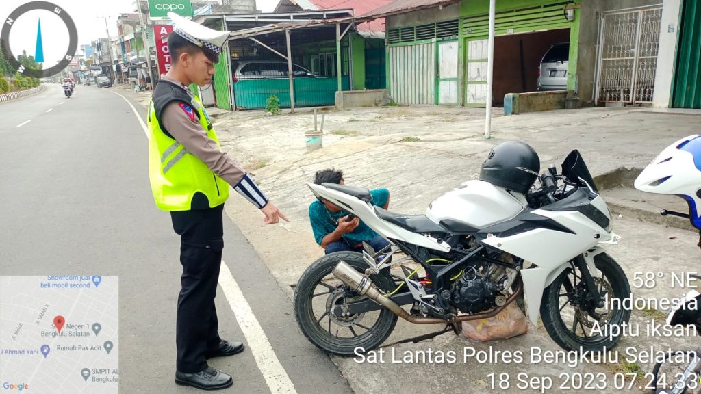 Dijelaskan Kasatlantas Polres Bengkulu Selatan Polda Bengkulu ,AKP B.A.S. Sinaga .S.Sos mengatakan tindakan tilang ETLE dan Teguran Simpatik serta pembagian , Pamflet serta penempelan stiker himbauan tersebut mulai dilaksanakan sejalan dengan Ops Zebra Nala 2023, dan untuk tilang manual diberikan kepada pengendara yang menggunakan knalpot Brong. adapun pelaksanaan kegiatan selama Ops Zebra Nala 2023 dilakukan di beberapa titik.
