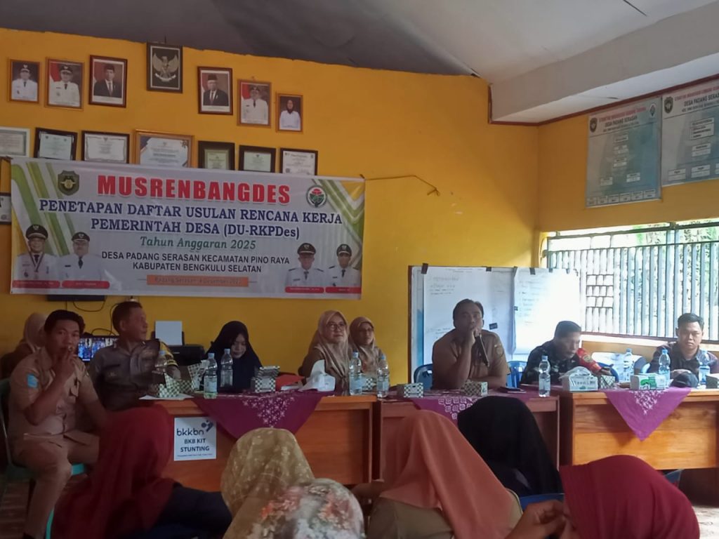 Elmadani.id/ Bengkulu Selatan-Senen 4 Desember 2023 pukul 08-30 wib pemeritahan desa Padang Serasan kecamatan Pino raya mengadakan kegiatan musyawarah pembangunan desa penetapan daftar usulan rencana kerja di tahun 2025.