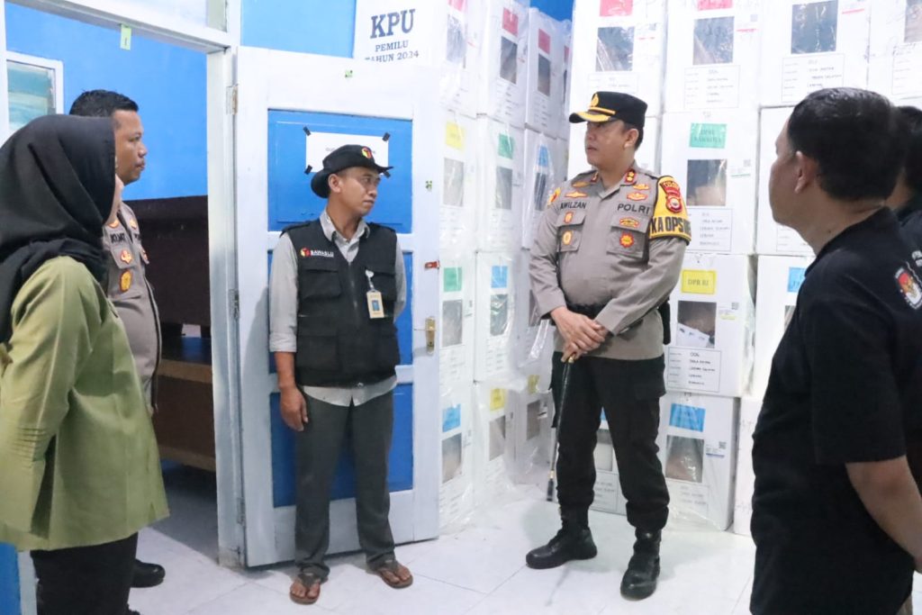 Elmadani.id | Lebong-Kapolres Lebong Polda Bengkulu AKBP Awilzan, memantau langsung perkembangan penghitungan suara dan arus balik logistik Pemilu 2024, dari TPS ke PPK di Kabupaten Lebong, Kamis (15/02/24).
