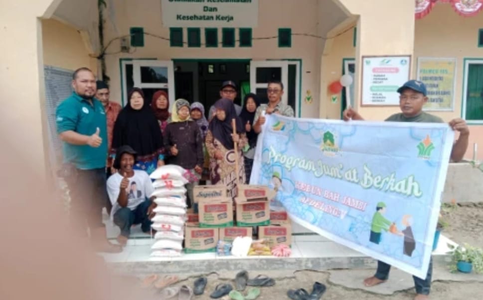 JAMBI – PTPN IV Regional 2 Unit Group 1 Kebun Bah Jambi Afdeling 5 melaksanakan program Jumat Berkah di halaman kantor Afdeling, Jumat 02 Agustus 2024. Adapun kegiatan tersebut berupa pemberian berkisar 20 paket bantuan sembako kepada masyarakat sekitar yang membutuhkan, termasuk orang tua jompo dan anak yatim. Setiap paket berisikan beras kemasan 5 kg, minyak goreng, telur, teh, mie instan, dan juga bantuan uang.