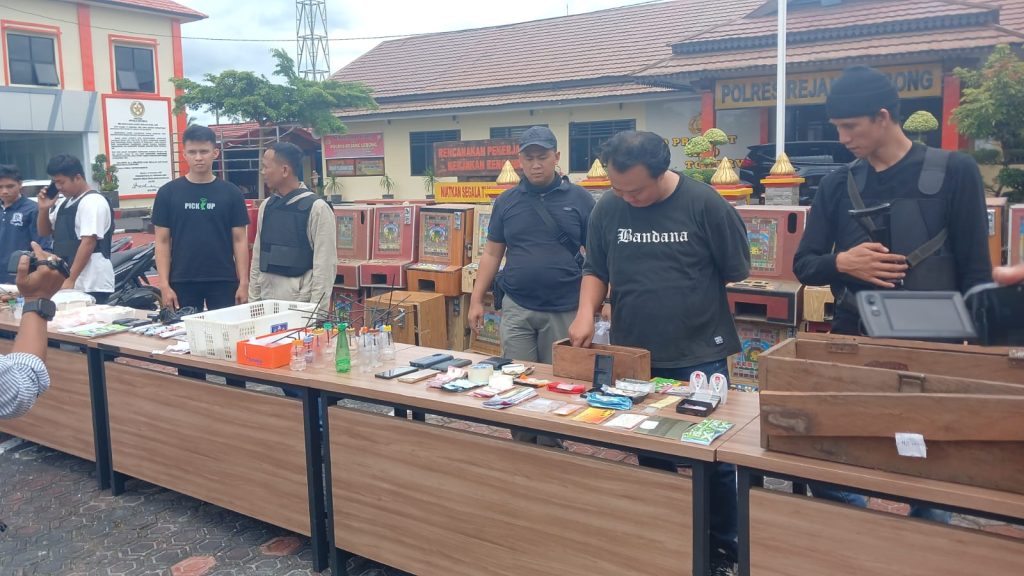 Adapun barang bukti yang diamankan dan diletakkan di halaman, puluhan buah mesin Dingdong, belasan senjata tajam (Sajam) yang saat ini diletakkan di halaman Polres Rejang Lebong.
