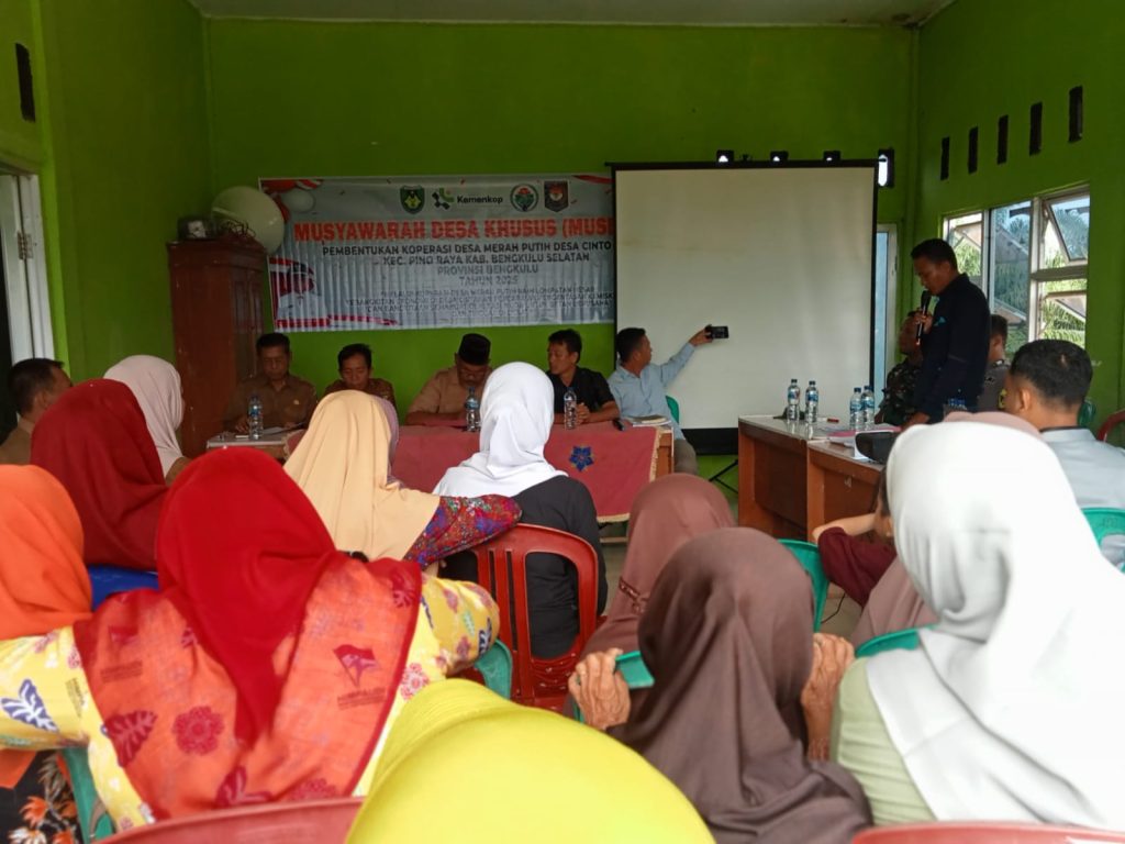 “Jadi sebelum pengurus dibentuk, diawali dengan sosialisasi mengenai Koperasi Desa Merah Putih, narasumber dari Kasi Koperasi, Dinas PMD dan TA Kabupaten Bengkulu Selatan,” ujarnya.