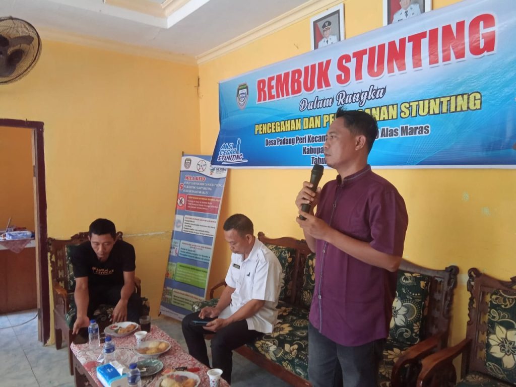 Berjalan nya acara Rembuk Stunting kepala desa mengucapkan terima kasih atas kedatangan baik dari kecamatan maupun dari dinas kesehatan dari pihak puskesmas kembang mumpo sudah datang kedesa Padang peri,guna untuk menerangkan dan memberi arahan dalam rangka pencegahan dan penanganan Rembuk Stunting ditahun 2025.