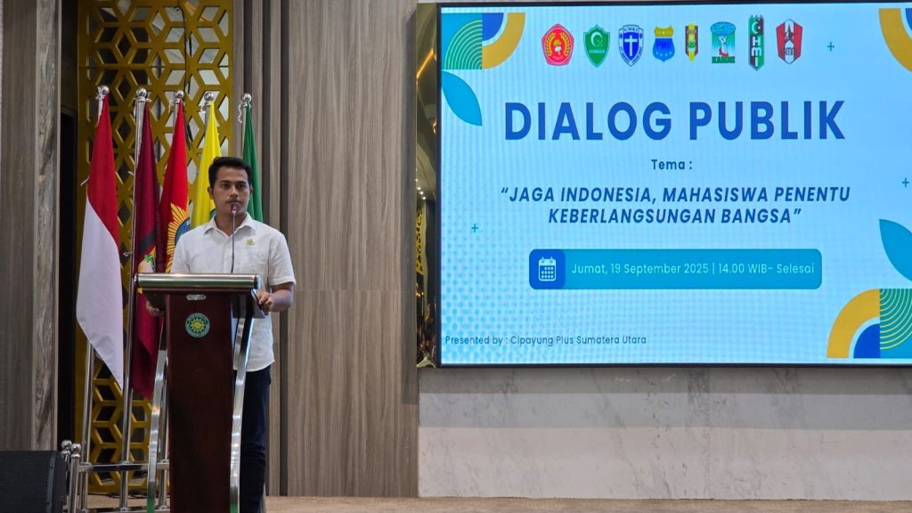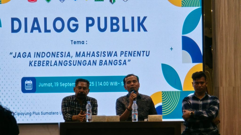Medan,- Berkaca dari aksi unjuk rasa yang belakangan marak terjadi di berbagai wilayah di Indonesia dan berujung anarkis sampai terjadi penjarahan dan vandalisme Cipayung Plus Sumut menggelar Dialog Publik bertema “Jaga Indonesia, Mahasiswa Penentu Keberlangsungan Bangsa”, Jumat (19/9) di Gedung Dakwah Muhammadiyah Sumut Jalan Sisingamangaraja Medan. Dialog publik yang dihadiri sekitar 200 peserta ini menghadirkan dua Narasumber yakni, Muhammad Ikhyar, SH Aktivis ’98 dan Sekretaris Forum Keluarga Alumni Ikatan Mahasiswa Muhammadiyah (Fokal- IMM) Sumut, Ahmad Khairuddin, M.Si.
