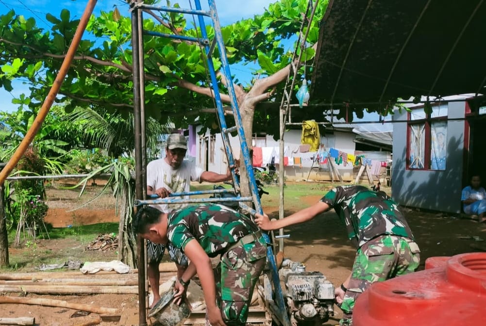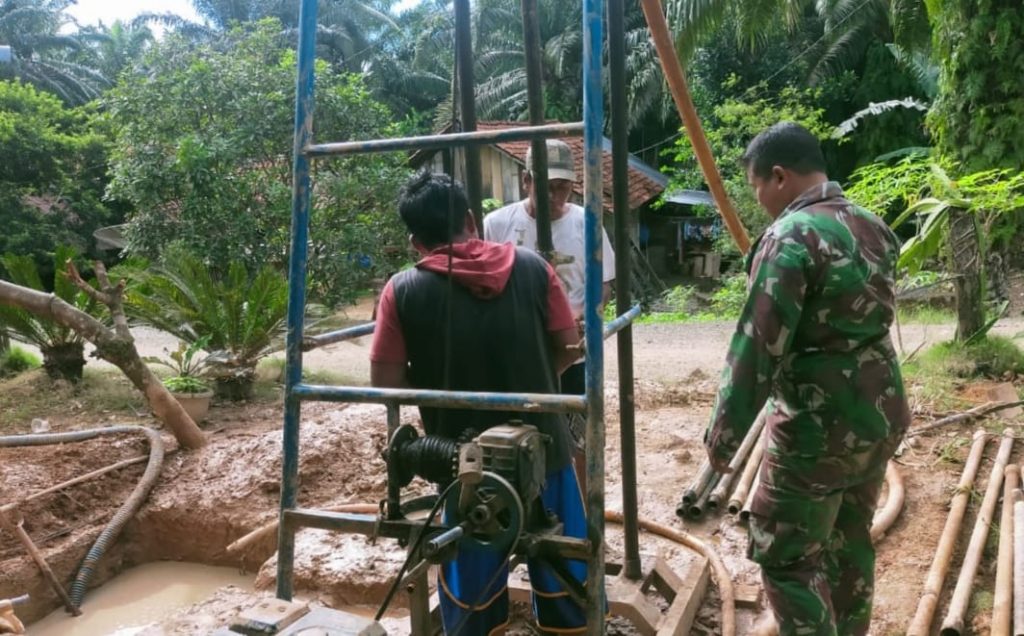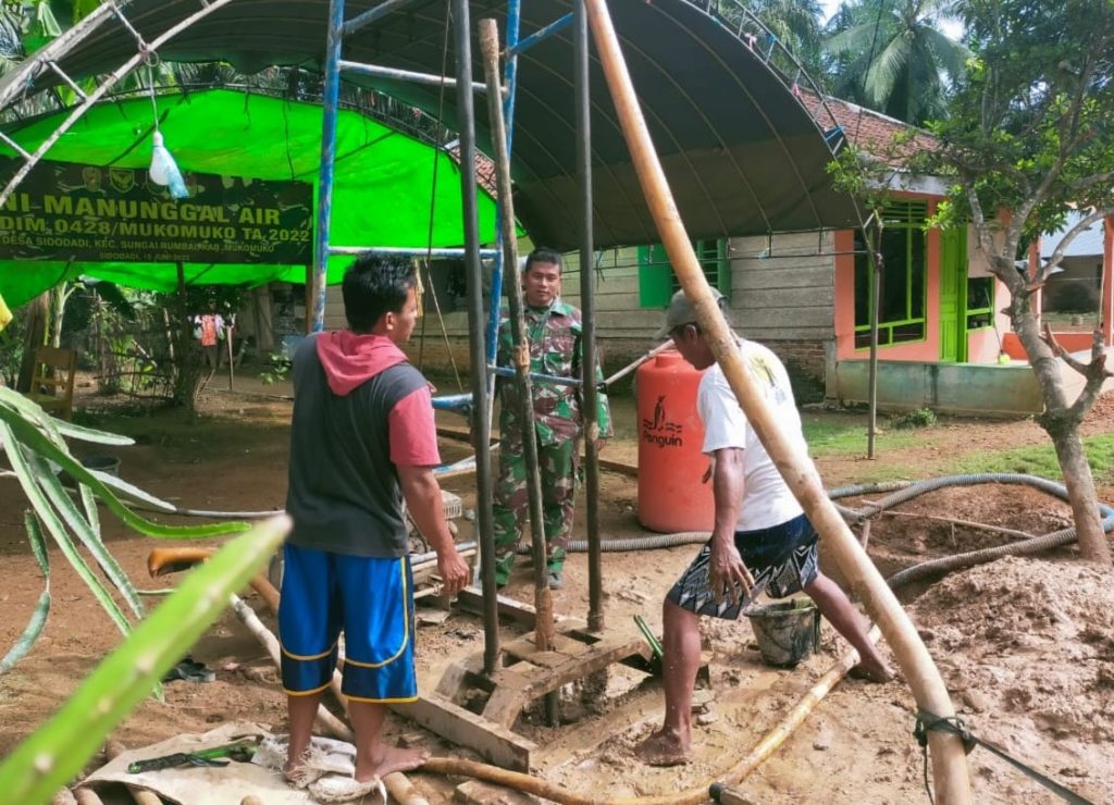 Elmadani.id | Mukomuko_Kodim 0428/MM. Anggota Kodim 0428/MM. Program,” Menunggal Air TNI AD Menjadi Solusi Air Bersih Seluruh Negeri, Pembuatan sumur bor Desa Sidodadi Kec Sungai Rumbai Kab Mukomuko. Minggu (29/5/2022)