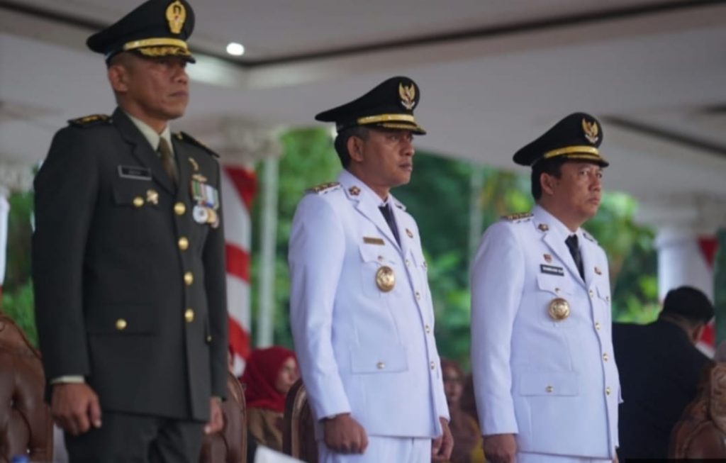 Bupati Muara Jambi dan Wakil Bupati Muara Jambi Ikuti Upacara Penurunan Bendera HUT RI ke 80.