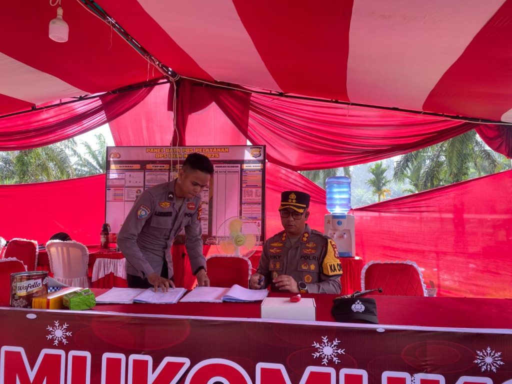 Mukomuko —Kapolres Mukomuko AKBP Riky Crisma Wardana, S.I.K., melaksanakan inspeksi mendadak (sidak) ke sejumlah Pos Pengamanan (Pos Pam) dan Pos Pelayanan (Pos Yan) dalam rangka pengamanan perayaan Natal dan Tahun Baru 2026 melalui Operasi Lilin Nala 2025.