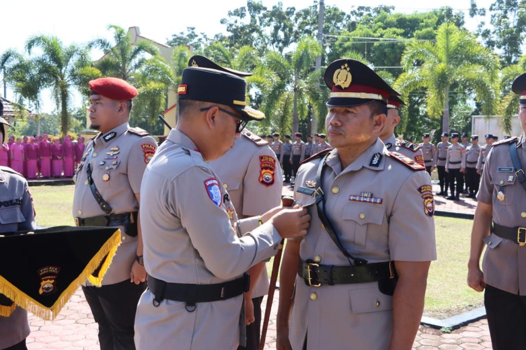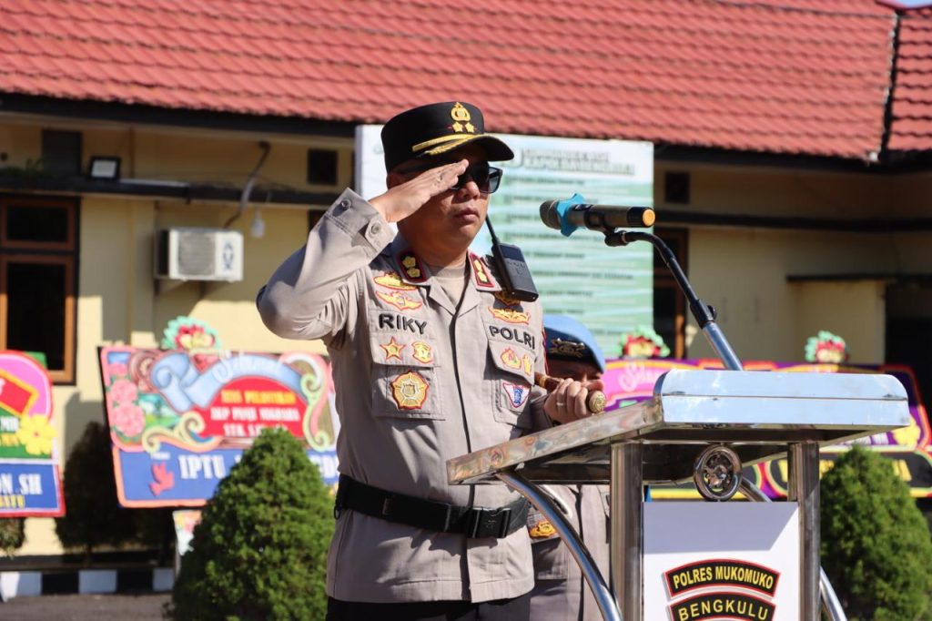 Upacara yang berlangsung di halaman Mapolres Mukomuko tersebut dipimpin langsung oleh Kapolres Mukomuko dan diikuti oleh jajaran pejabat utama, personel Polres, serta Bhayangkari. Prosesi berjalan khidmat dengan rangkaian pengambilan sumpah jabatan, penandatanganan berita acara, hingga penyematan tanda jabatan sebagai simbol resmi pergantian tanggung jawab.